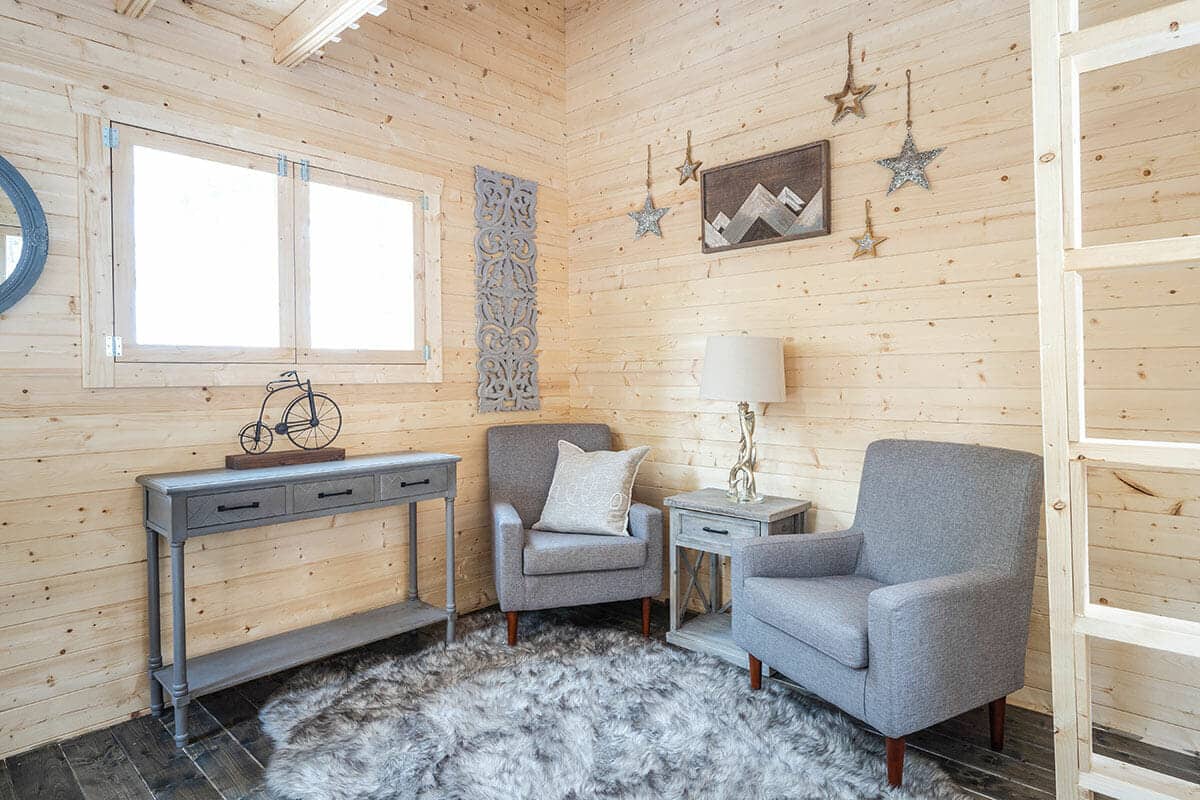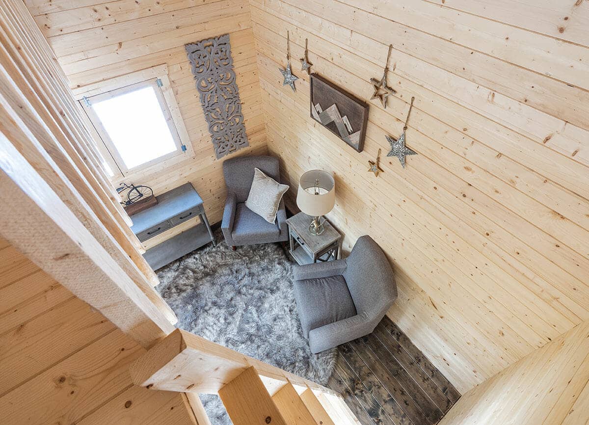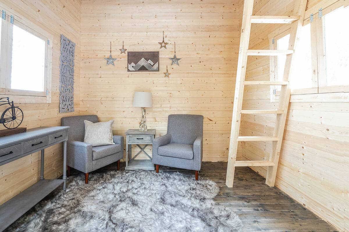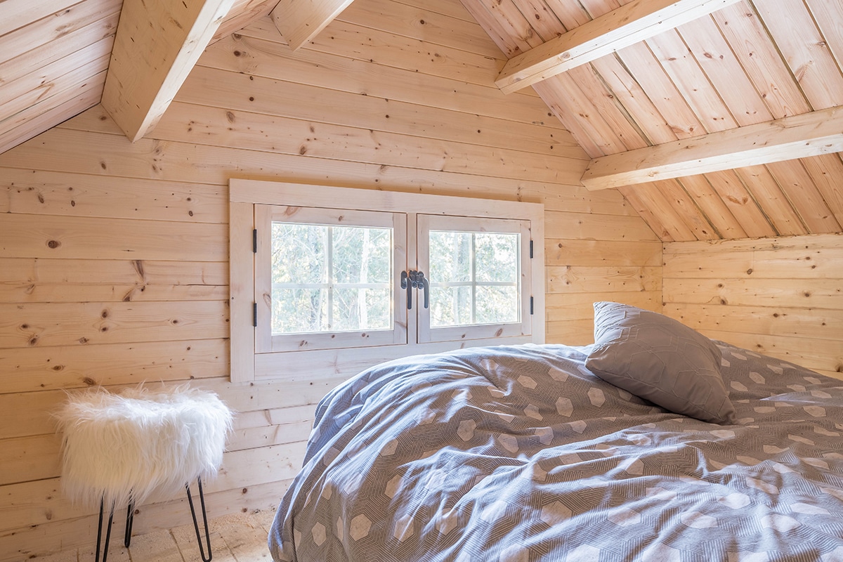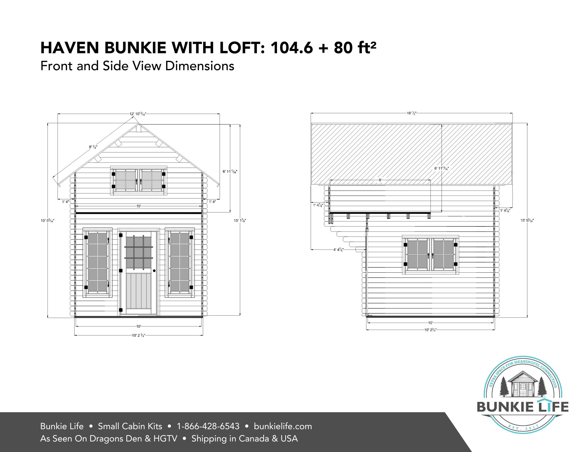 Do you need extra space at your home or cottage? This bunkie has the tallest loft. Its base is approx 10′ x 10′ (104.6 sq. ft.). The bunkie loft is 8′ x 10′ (80 sq. ft.) and tall enough that you can stand up in it (82″).