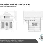 Footprint 10′ 2 3⁄4″ W x 10’2 3⁄4″ D - Height 6′ 11 11⁄16″ + 15′ 5 5⁄16″ - sq ft 104.6 ft² + Loft 80 ft² - 6 Windows