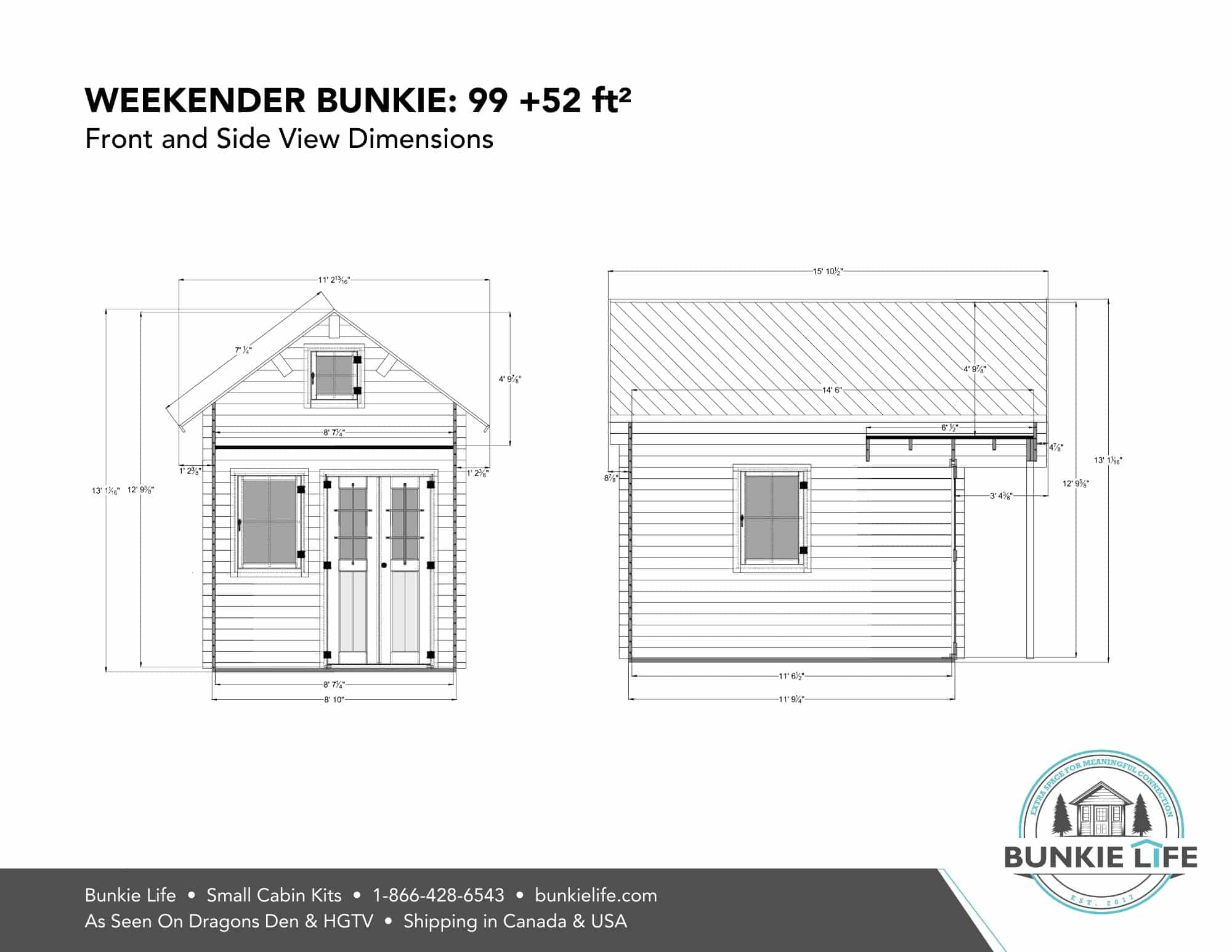 Do you need extra space? This easy-to-build bunkie is one of our most popular models. The interior ground floor is 99 sq ft, and the loft is large and can fit 2 twin mattresses. All the pieces are pre-cut, and many clients can build this bunkie in a weekend.